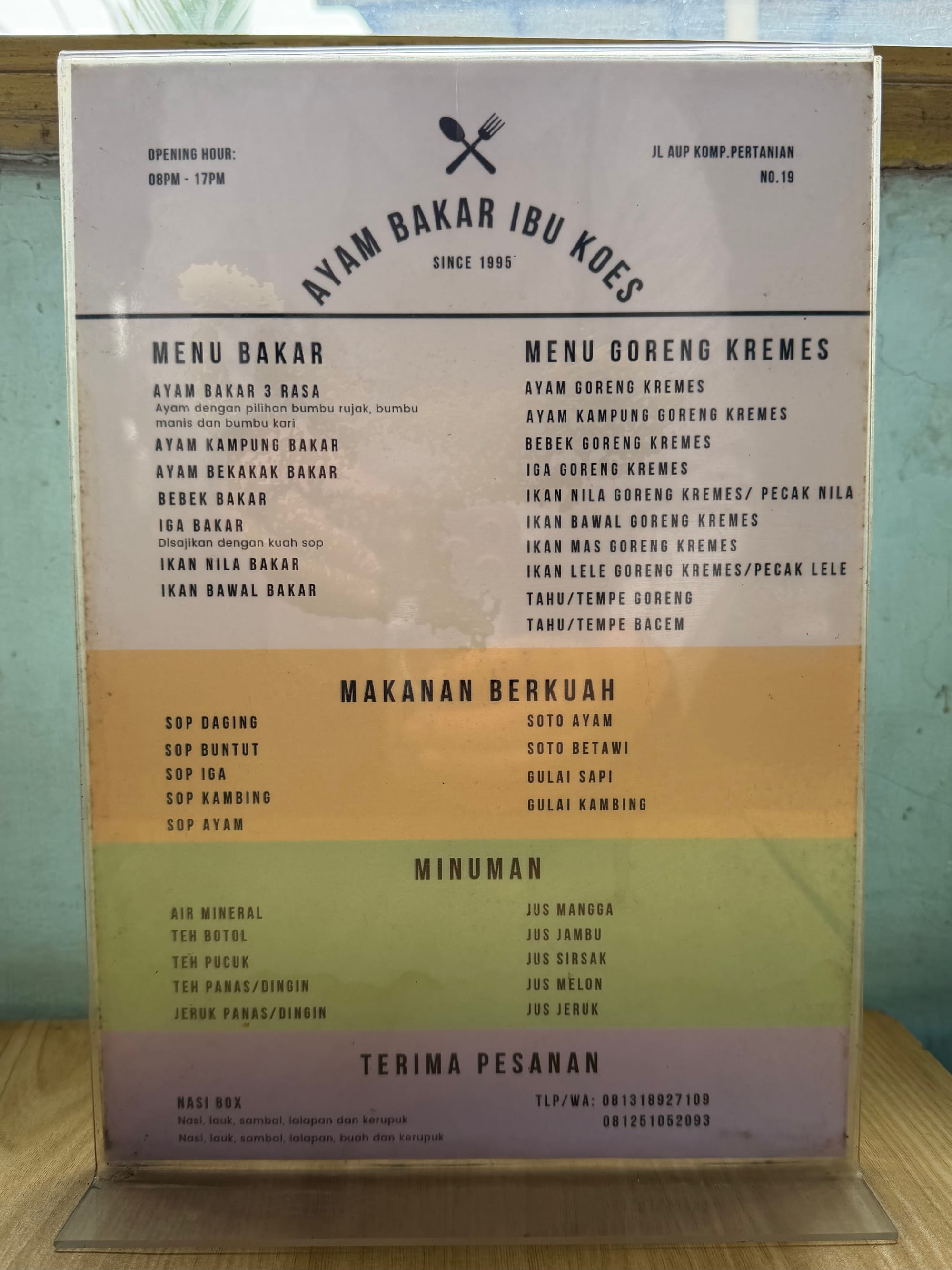 Beberapa bulan kemudian waktu kebetulan lagi main lagi ke area sini, keingat rekomendasi para anak kuliahan dulu. Pas banget nih tadi pagi nggak sarapan, lagi lapar-laparnya. Oke deh, mari dicoba. Ketik "Ayam Bakar Ibu Koes" di Google, lalu langsung meluncur ke tempatnya penasaran pengen nyobain.